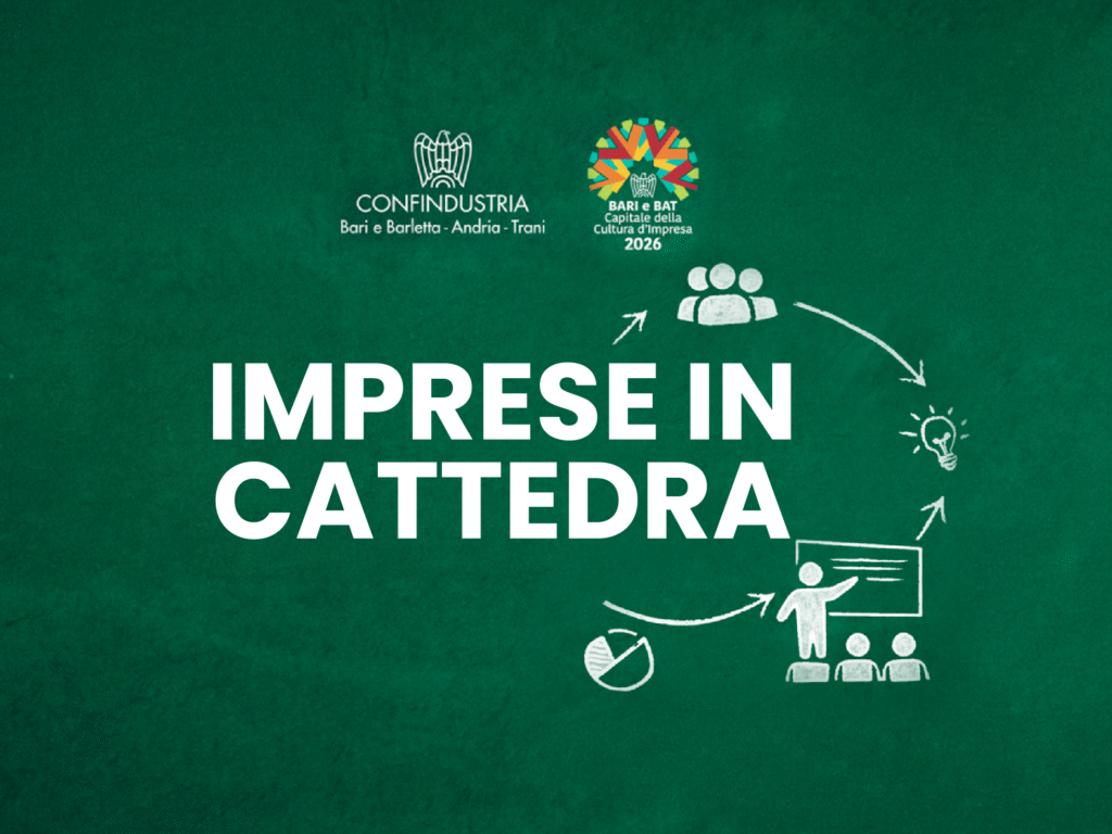“Imprese in cattedra” è un’iniziativa di orientamento al mondo del lavoro promossa da Confindustria Bari e BAT, in collaborazione con l’USR Puglia, nell’ambito del programma “Capitale della Cultura d’Impresa di Confindustria 2026”, un progetto che valorizza il ruolo delle imprese nella diffusione di conoscenza, innovazione e cultura sul territorio.
