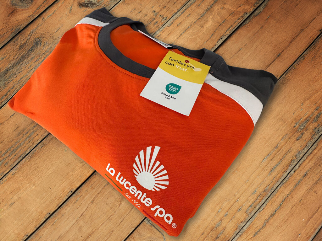 Le divise utilizzate dagli operatori de La Lucente SpA sono certificate OEKO-TEX® Standard 100, a garanzia dell’assenza di sostanze nocive per la pelle e della massima sicurezza nell’uso quotidiano. Il sigillo è sinonimo di massima sicurezza del prodotto.